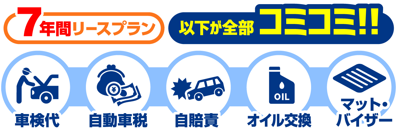 毎月の支払いに7年分の車検代・自動車税・自賠責・諸費用・オイル交換代が含まれているから、突然の出費ゼロ!